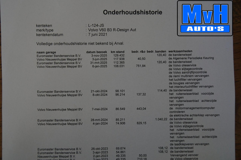 - Laatste onderhoudsbeurt gehad in januari 2025 bij 108.031km. (Groot onderhoud)