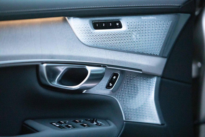 De XC90 is zoals afgebeeld beschikbaar in kleur Onyx Black Metallic lakwerk en biedt een scala aan premium functies. Met luchtvering, nappa leder met ventilatie en massagefuncties, is dit voertuig ontworpen voor ultiem rijcomfort. Het Bowers & Wilkins High-End audiosysteem zorgt voor een indrukwekkende geluidsbeleving.