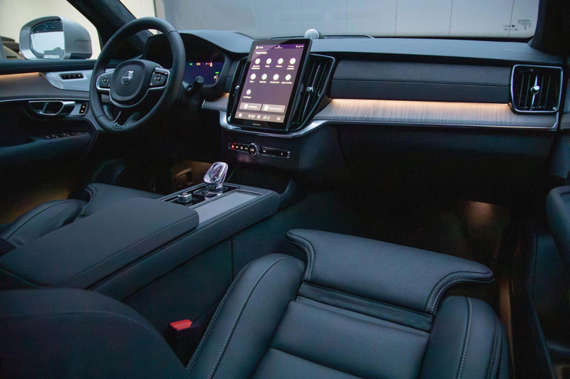 De XC90 is zoals afgebeeld beschikbaar in kleur Onyx Black Metallic lakwerk en biedt een scala aan premium functies. Met luchtvering, nappa leder met ventilatie en massagefuncties, is dit voertuig ontworpen voor ultiem rijcomfort. Het Bowers & Wilkins High-End audiosysteem zorgt voor een indrukwekkende geluidsbeleving.