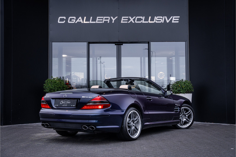 Deze machtig mooie Mercedes-Benz SL55 AMG, origineel Nederlands geleverd en uitgevoerd in een zeer exclusieve metallic lak, genaamd Designo Chromaflair. Een bijzonder stijlvolle en onderscheidende verschijning die je zelden tegenkomt!