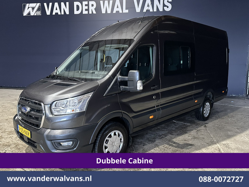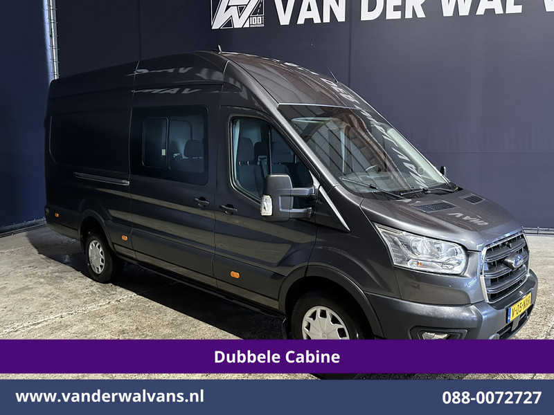 185pk sterke Ford Transit L4H3 Dubbel cabine Euro6 met airconditioning en 6 zitplaatsen. Deze krachtige diesel rijdt goed en is uitgevoerd met camera, cruisecontrol, parkeersensoren en bluetooth telefoonvoorbereiding.