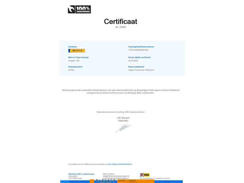 - Onderhoudshistorie aanwezig: Ja