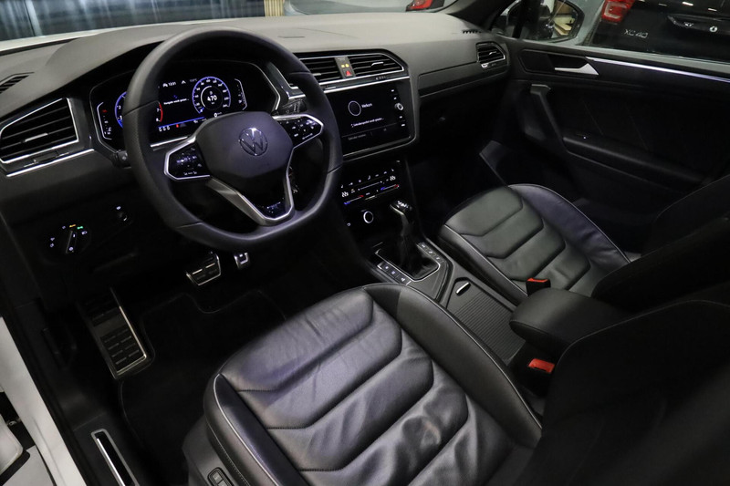 Volkswagen Tiguan 1.5 TSI R-Line Black Style Vienna Leder R stoelen, 20'' Suzuka, ACC, Panoramadak, Memory, Inklapbare trekhaak, DSG, Virtual Cockpit, IQ Light MATRIX, Adaptive Chassis Control DCC, Stoelverwarming voor en achter, Automatisch inparkeren, Head up Display, Achteruitrijcamera en nog veel meer...