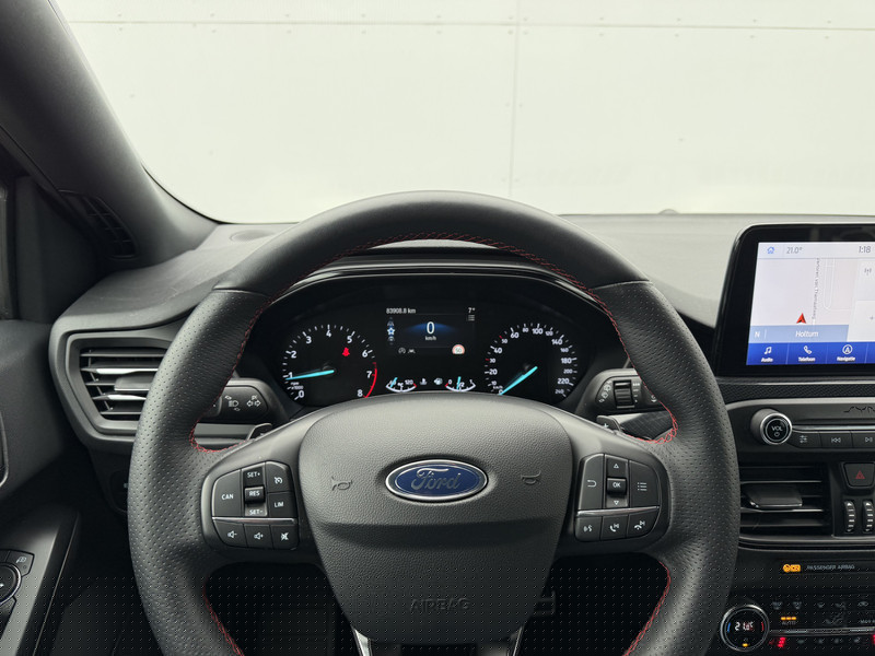 Zoals u mag verwachten van deze Ford Focus Wagon is hij uitgerust met een reeks aan actieve veiligheidssystemen. Dat de auto steeds meer taken van de bestuurder overneemt, merkt u bijvoorbeeld aan het systeem voor verkeersbord-detectie in deze Ford. Het Lane-keeping systeem garandeert dat u zich niet onverhoeds buiten de lijnen van de rijstrook begeeft. De forward collision warning geeft een botswaarschuwing als een aanrijding dreigt met een voorligger. U bent mede dankzij hill hold functie, brake assist en bandenspanningcontrolesysteem steeds veilig onderweg.