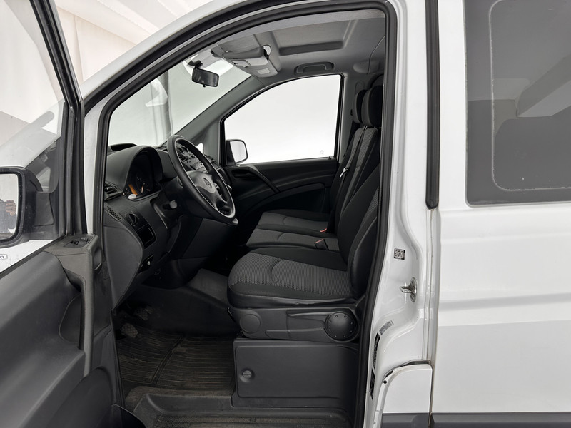 Vorm, constructie, prestaties en techniek... Duitse auto's behoren tot de beste van de wereld, en dat is niet voor niks. De aandrijving van deze Mercedes-Benz wordt verzorgd door een viercilinder dieselmotor en een handgeschakelde zesversnellingsbak. Sport, werk, boodschappen, gezinsuitje... Elk gebruiksdoel heeft andere voorwaarden. Van deze Mercedes-Benz Vito mag u net zoveel flexibiliteit verwachten. Vandaar de derde zitrij die u naar behoefte toevoegt of juist wegklapt. De schuifdeur zorgt voor een grote deuropening waardoor niet alleen in- en uitstappen gemakkelijker wordt, maar ook bijvoorbeeld het plaatsen van bagage of een kinderzitje. De uitmonstering van deze auto wordt gecompleteerd door onder meer 16 inch lichtmetalen velgen, warmtewerend glas, in hoogte verstelbare passagiersstoel, elektrisch verstelde en verwarmde buitenspiegels en elektrisch bedienbare ramen voor.